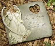 Garden Stepping Stone "When a Cardinal appears in your yard, it is a visitor from Heaven." Polystone. Stepping stone also has a hook for hanging. Colors are Grey, Black and red. 11" diameter.